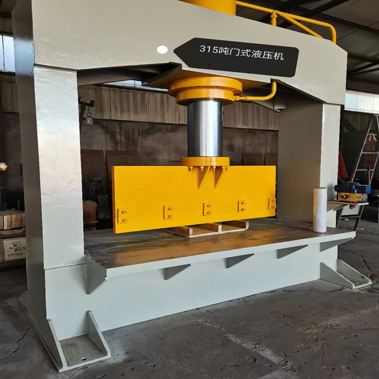 1、液压机采用龙门式整体结构形式。机身采用Q235钢板CO2气体保护焊焊接。机身的工作台开有“T”型槽,便于模具安装和固定。